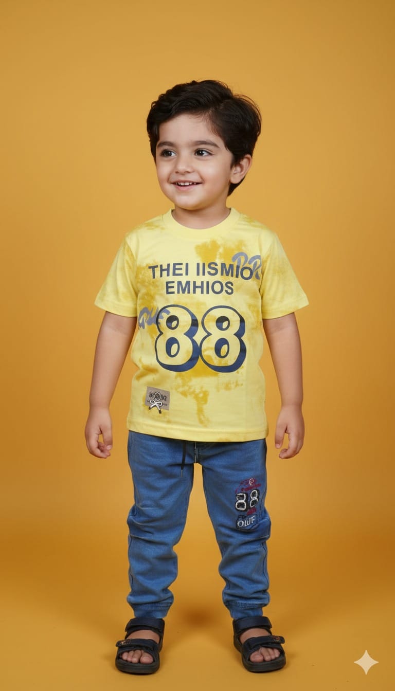 Upgrade your little one’s wardrobe with this vibrant and trendy 2-piece outfit. Perfect for active toddlers, this set combines the effortless cool of a tie-dye t-shirt with the rugged comfort of distressed-style denim joggers. Whether it’s a birthday party, a casual outing, or a playdate, your boy will stay comfortable and stylish all day long.