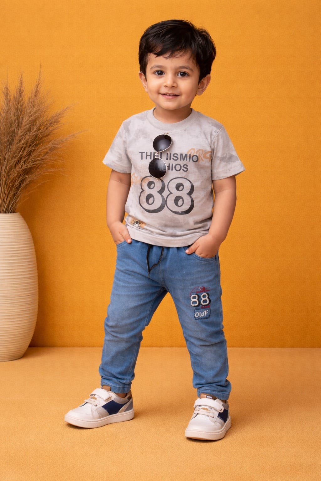 - Detailed Craftsmanship: Includes matching “88” patches on the trousers and a small accent tag on the shirt for a coordinated look.