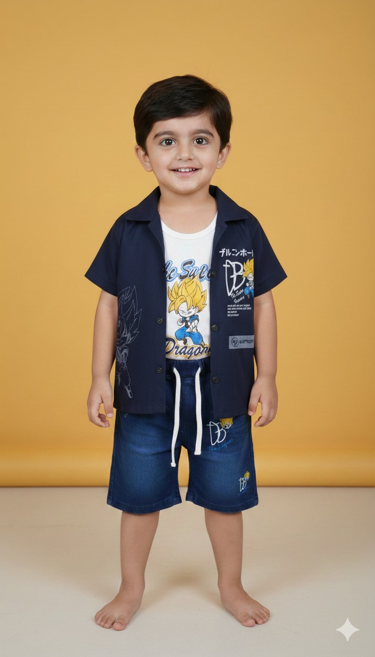 Complete 3-Piece Set: Includes a button-down short-sleeve shirt, a breathable inner tank top, and matching denim-style shorts.