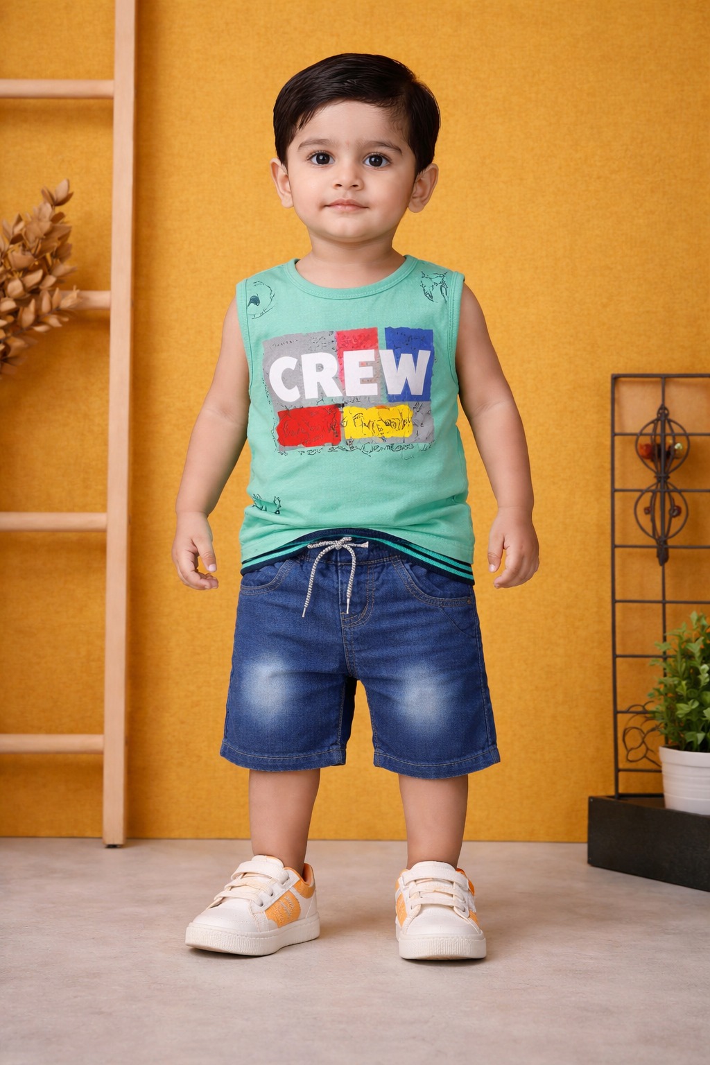 Easy Styling: A complete, ready-to-wear outfit that pairs perfectly with his favorite white sneakers or sandals.