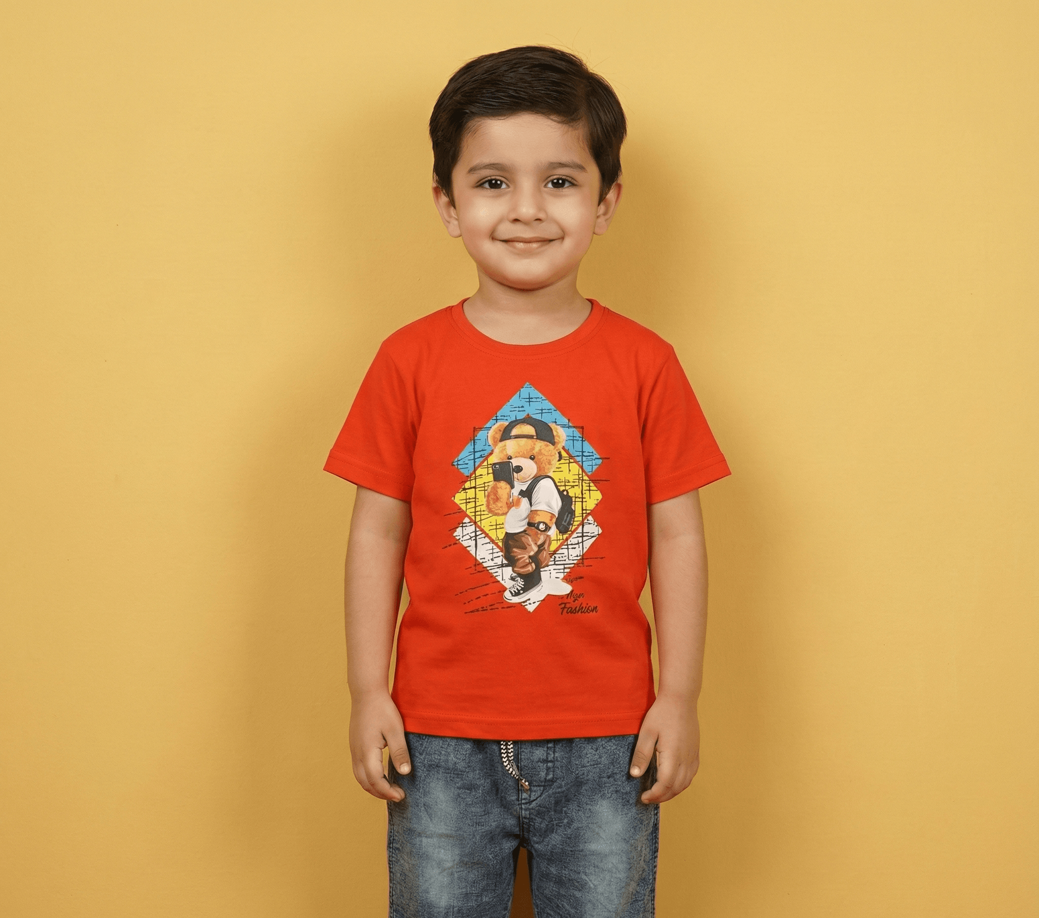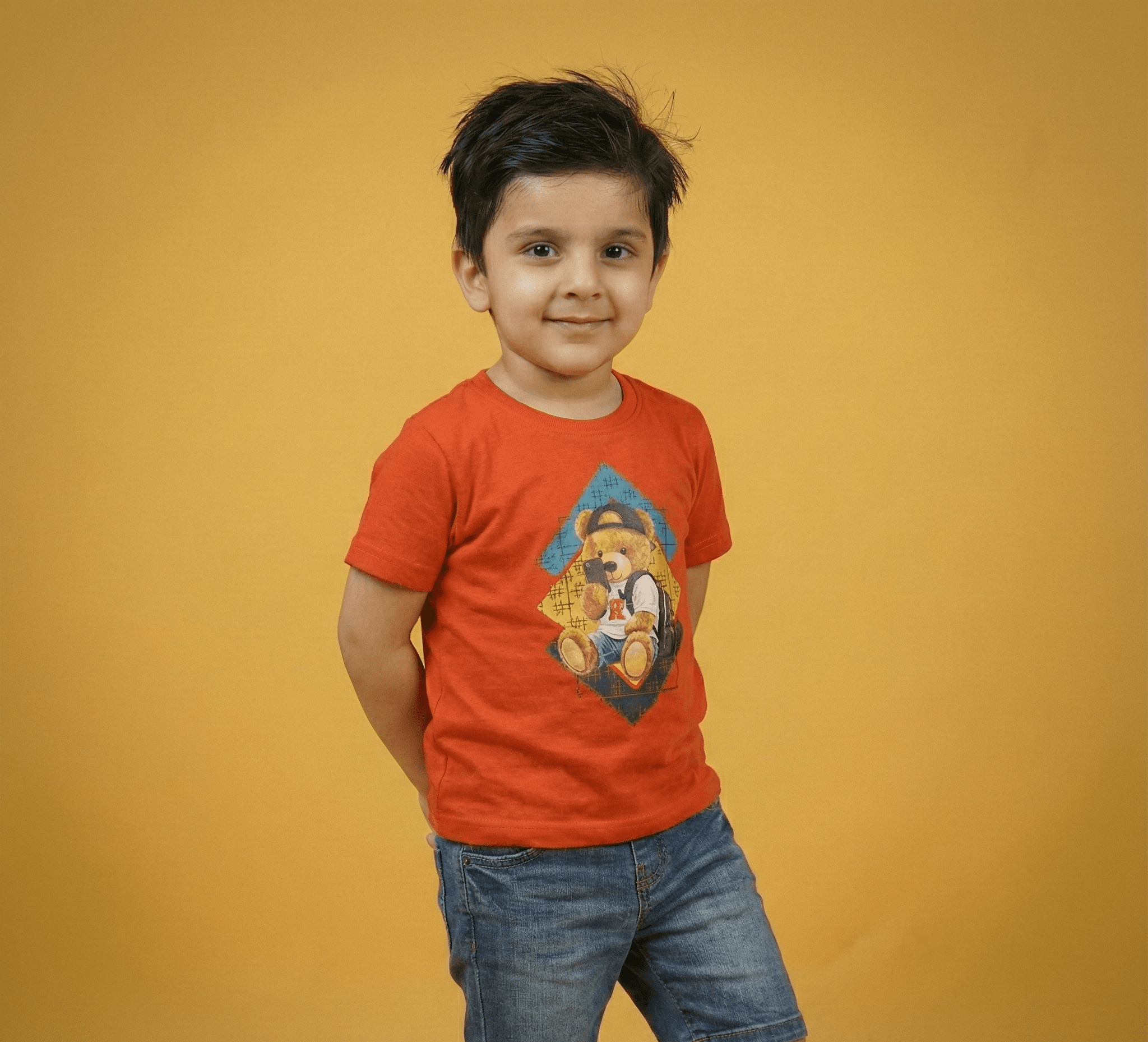 The “Forever Denim Bear” Set (Design # 4624) is the ultimate summer essential for active young boys. The top is crafted from specialized Lycra Malai PC fabric, which offers an incredible amount of stretch and a “cool-to-the-touch” sensation, perfect for peak summer heat. The adorable bear graphic adds a playful element, while the coordinated denim-look shorts provide a rugged look without the stiffness of real denim. The shorts feature a soft-grip elastic waistband with a sporty drawstring for a custom fit. Lightweight and breathable, this 2-piece set is perfect for beach trips, park playdates, or any warm-weather adventure.