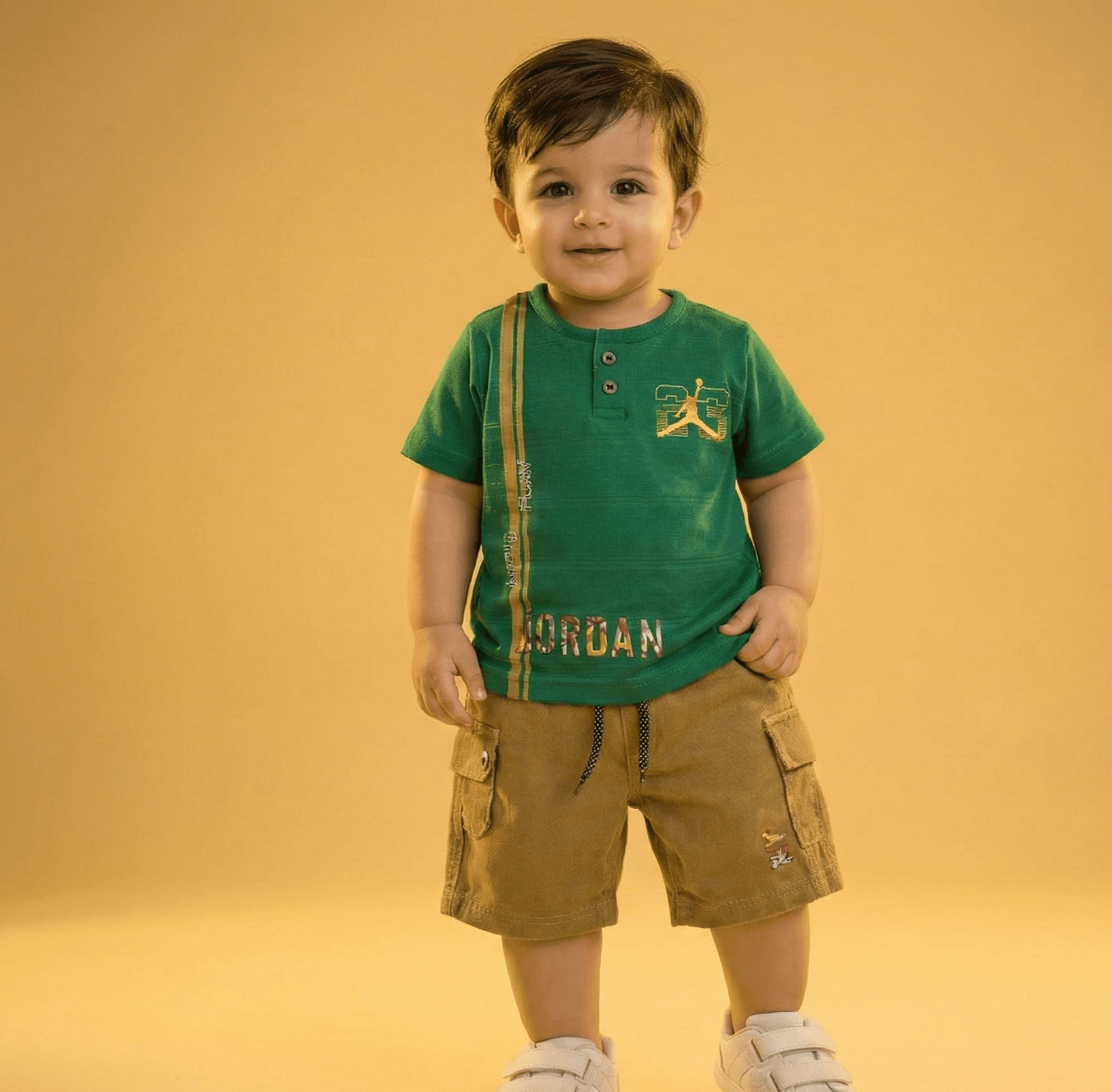 The Shorts: Ready for Action The matching cargo shorts are the highlight of this set. Built for durability and style, they feature a relaxed fit and functional side pockets. Whether he’s heading to the park or a casual birthday party, these shorts provide a “Perfect Fit” that moves with him.